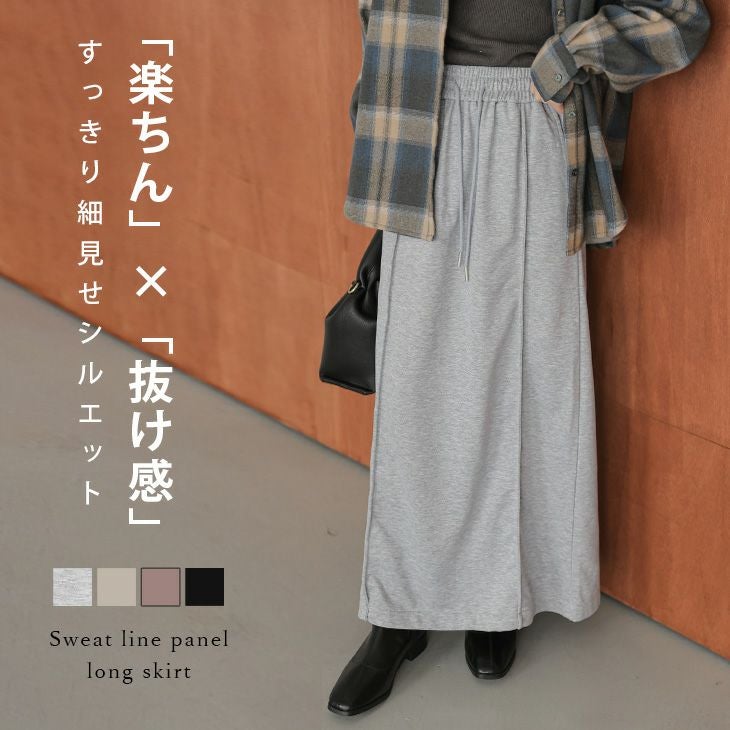 スウェット Iライン フロント切り替え ロング丈 スカート 【春夏半額SALE対象】 [AMELY by La-gemme]スウェット Iライン フロント切り替え ロング丈 スカート スタイルアップ 脚長 ウエスト総ゴム ドローコード レディース 2025秋冬新作【askaw25-1538】【即納:1-5営業日】【送料無料】宅込