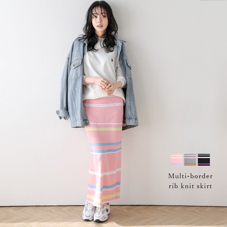 マルチボーダー リブニット タイト ナロースカート 【春夏半額SALE対象】 [AMELY by La-gemme]マルチボーダー リブニット タイト ナロースカート ウエストゴム ロング丈 Iライン 美脚 ボトムス レディース おすすめ おしゃれ 2026春夏新作 【askss26-1964】【即納:1-5営業日】【送料無料】メ込2