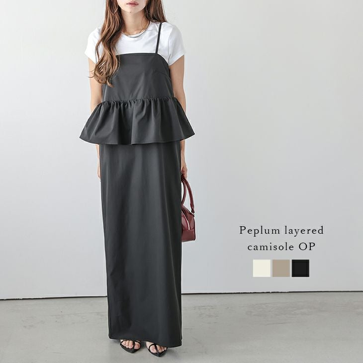ドッキングワンピース ペプラム バックリボン 【春夏半額SALE対象】 [AMELY by La-gemme]ドッキングワンピース キャミワンピ ペプラム Iラインスカート バックリボン レイヤード風 セットアップ風 バックスリット スタイルアップ レディース おしゃれ フリーサイズ メール便 2026春夏新作【asrss25-1436】【即納:1-5営業日】【送料無料】メ込2