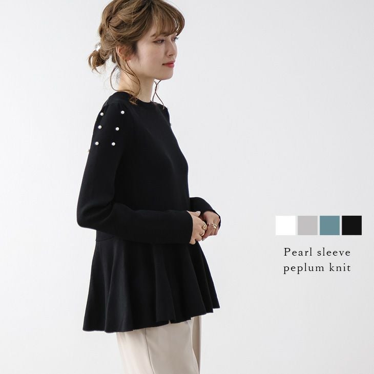 トップス ニット プルオーバー ペプラム パール 【春夏半額SALE対象】 [AMELY by La-gemme]トップス ニット プルオーバー ペプラム パール フレア パワショル フェミニン 上品 トップス レディース 2025春夏新作 【ass24-tp148】【即納:1-5営業日】【送料無料】メ込2