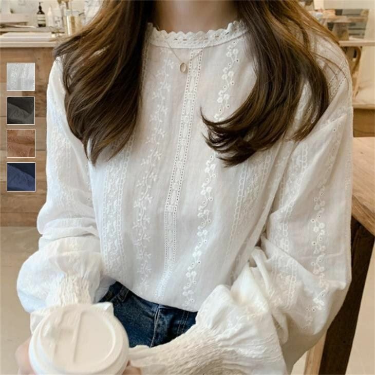 ボリュームスリーブ ブラウス ラウンドネック レース トレンド [AMELY by La-gemme]ブラウス ボリュームスリーブ ボリューム袖 ラウンドネック レース トレンド 可愛い 春夏 長袖 フリル袖 韓国ファッション【atp203-324】【即納:1-5営業日】ユ込3