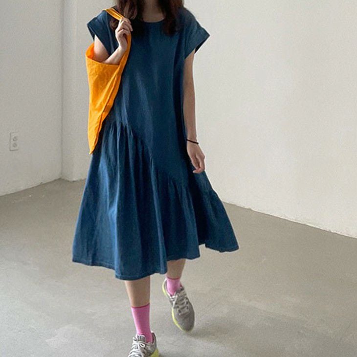 フレンチスリーブ ワンピース 半袖 クルーネック 斜めライン [AMELY by La-gemme]フレンチスリーブ ワンピース 半袖 クルーネック 斜めライン 斜め切り替え ミディアム丈 フレア おしゃれ ガーリー お出掛け カジュアル レディース 春夏 韓国ファッション 【atp204-108】【即納:1-5営業日】【送料無料】メ込2