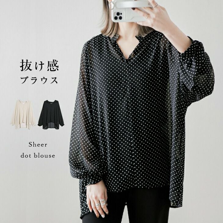[AMELY by La-gemme]ドット柄ブラウス シアー素材 長袖 [AMELY by La-gemme]ドット柄ブラウス シアー素材 長袖 ふんわり ボリューム袖 トップス おすすめ おしゃれ ブラック フリーサイズ メール便 2025春 【atp210-354】【即納:1-5営業日】【送料無料】ユ込2