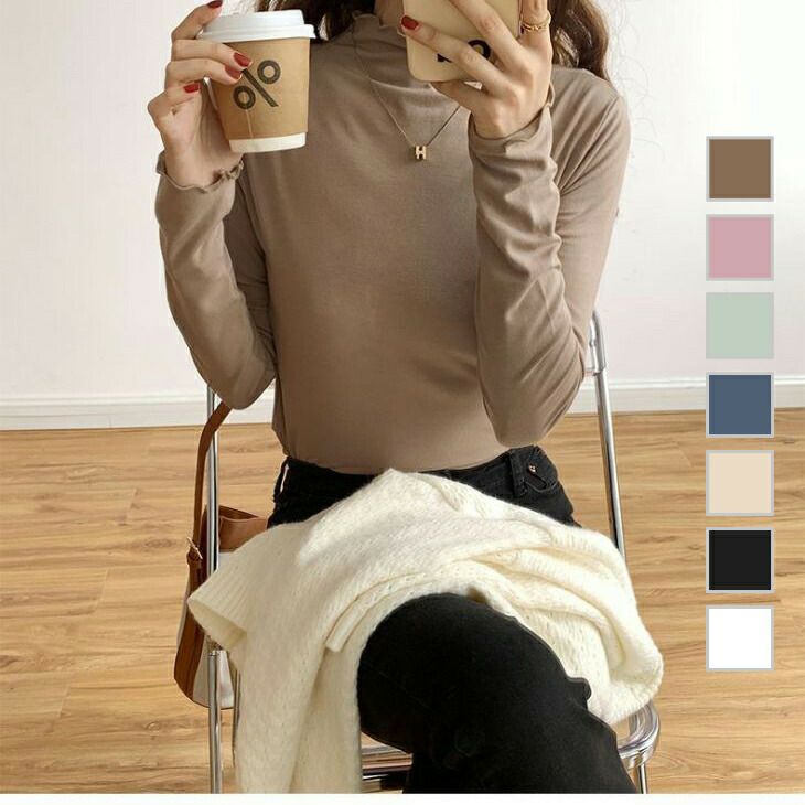 [AMELY by La-gemme]フリル タートルネック カットソー [AMELY by La-gemme]フリル タートルネック カットソー タートル ニット 薄手 シンプル インナー レイヤード カジュアル オフィス 薄手 長袖 トップス 大人 レディースファッション 韓国ファッション【atp22-011】【即納:1-5営業日】【送料無料】メ込2