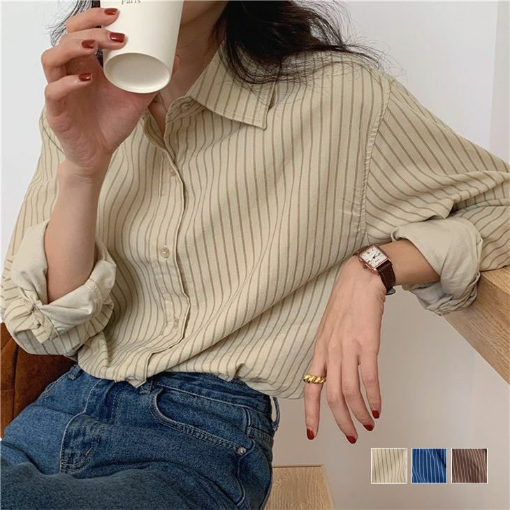 ストライプシャツ ブラウス 長袖 きれいめ カジュアル [AMELY by La-gemme]ストライプシャツ ブラウス 長袖 きれいめ カジュアル ガーリー 女子会 重ね着 ストライプ柄 シンプル おしゃれ レイヤード お出かけ 羽織り ナチュラル オフィス 大人トップス レディース 春夏 韓国ファッション【atp22-086】【即納:1-5営業日】【送料無料】メ込2