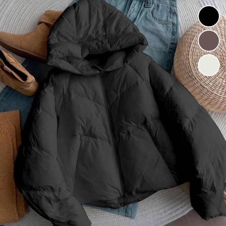 ダウンジャケット 中綿 ブルゾン アウター ショート丈 [AMELY by La-gemme]ダウンジャケット 中綿 ブルゾン アウター ショート丈 フード付き ボリューム 軽量 防寒 暖かい シンプル カジュアル ユニセックス おすすめ おしゃれ レディース トレンド 2025秋冬新作 【atp25-2605】【予約販売:15-20日】【送料無料】宅込