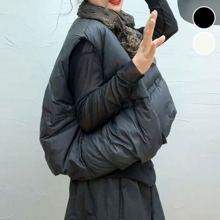 ダウンベスト 中綿ベスト アウター ショート丈 ノースリーブ [AMELY by La-gemme]ダウンベスト 中綿ベスト アウター ショート丈 ノースリーブ Vネック ボリューム 防寒 軽量 暖かい カジュアル モード おすすめ おしゃれ レディース トレンド 人気 プチプラ 韓国ファッション 2025秋冬新作 【atp25-3207】【予約販売:15-20日】【送料無料】宅込