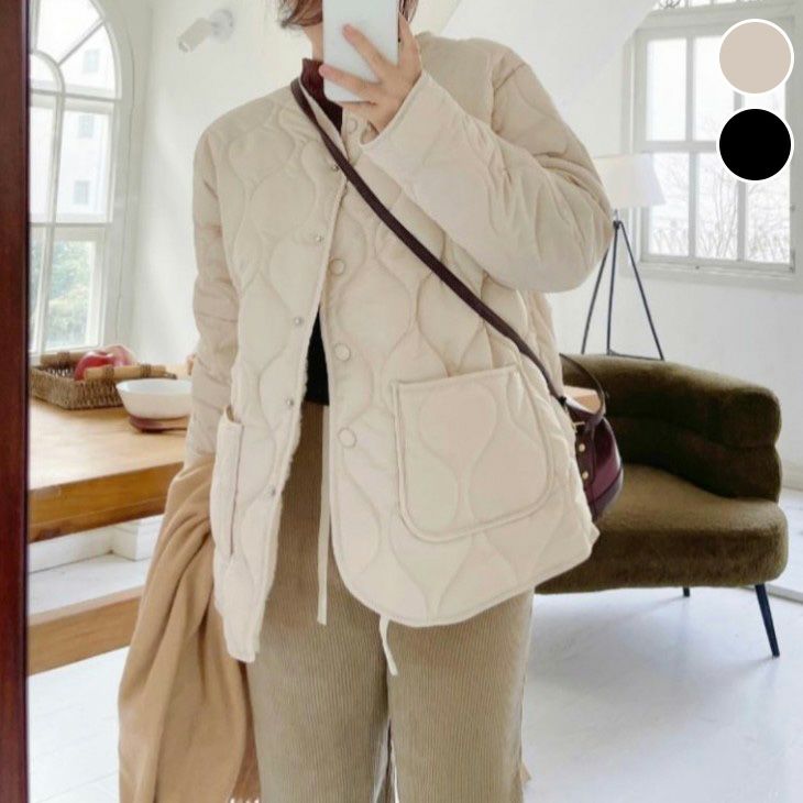 キルティングジャケット ノーカラー ブルゾン 裏ボア [AMELY by La-gemme]キルティングジャケット ノーカラー ブルゾン 中綿 裏ボア ライトアウター カジュアル きれいめ 波型キルト 保温性 オーバーサイズ おしゃれ レディース トレンド 人気 プチプラ 韓国ファッション 2025秋冬新作【atp25-6610】【予約販売:15-20日】【送料無料】宅込