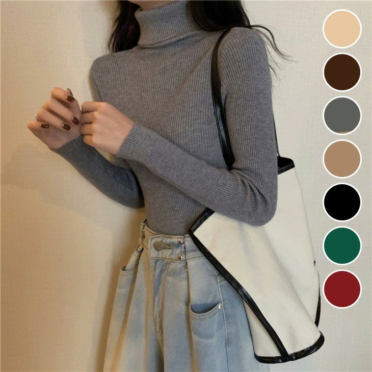 タートルネック ハイネック リブニット 長袖 きれいめ [AMELY by La-gemme]タートルネック ハイネック リブニット 長袖 きれいめ 暖かい シンプル おすすめ おしゃれ ファッション レディース トレンド 人気 プチプラ 韓国ファッション 2025秋冬新作 【atp25-tp047】【即納:1-5営業日】【送料無料】メ込2