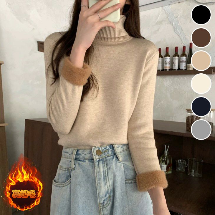 裏起毛 タートルネック ハイネック 厚手 ニット [AMELY by La-gemme]裏起毛 タートルネック ハイネック 厚手 ニット 長袖 きれいめ 暖かい シンプル おすすめ おしゃれ ファッション レディース トレンド 人気 プチプラ 韓国ファッション 2025秋冬新作【atp25-tp051】【即納:1-5営業日】【送料無料】メ込2