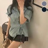 アシンメトリー サイドリボン デニム シャツ 半袖 [AMELY by La-gemme]アシンメトリー サイドリボン デニム シャツ 半袖 シンプル ルーズフィット カジュアル きれいめ 春夏 おすすめ レディース オシャレ トレンド 人気 プチプラ 韓国ファッション 【atp26-7243】【予約販売:15-20日】【送料無料】メ込2