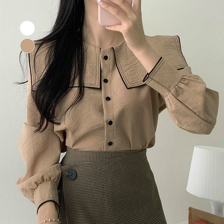 [AMELY by La-gemme]トップス シャツ ブラウス [AMELY by La-gemme]トップス シャツ ブラウス セーラーカラー 長袖 レトロ風 シンプル ガーリー 可愛い 大人可愛い おしゃれ トレンド デート 女子会 レディース おすすめ プチプラ 韓国ファッション 【atp302-078】【予約販売:15-20日】【送料無料】メ込2