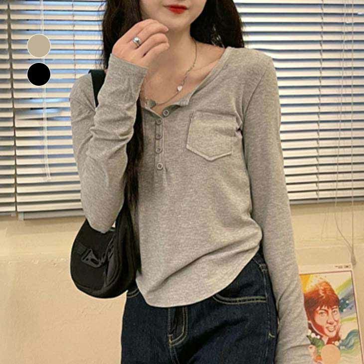 [AMELY by La-gemme]トップス Tシャツ カットソー [AMELY by La-gemme]トップス Tシャツ カットソー リブ ボタンネック シンプル ベーシック 可愛い スリム ラフ感 抜け感 大人可愛い カジュアル デート 女子会 おしゃれ レディース おすすめ プチプラ 韓国ファッション 【atp302-111】【予約販売:15-20日】【送料無料】メ込2
