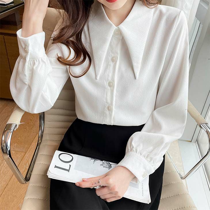 [AMELY by La-gemme]トップス シャツ ブラウス [AMELY by La-gemme]トップス シャツ ブラウス 長袖 ポインテッドカラー デザイン 高見え 上品 大人可愛い キレイめ ベーシック シンプル デート 女子会 おしゃれ レディース おすすめ プチプラ 韓国ファッション 【atp302-119】【予約販売:15-20日】【送料無料】メ込2