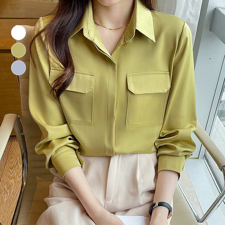 [AMELY by La-gemme]トップス シャツ ブラウス [AMELY by La-gemme]トップス シャツ ブラウス Vネック サテン 上品 フォーマル 通勤 長袖 キレイめ 大人可愛い 高見え シンプル ベーシック デート 女子会 おしゃれ レディース おすすめ プチプラ 韓国ファッション 【atp302-125】【予約販売:15-20日】【送料無料】メ込2
