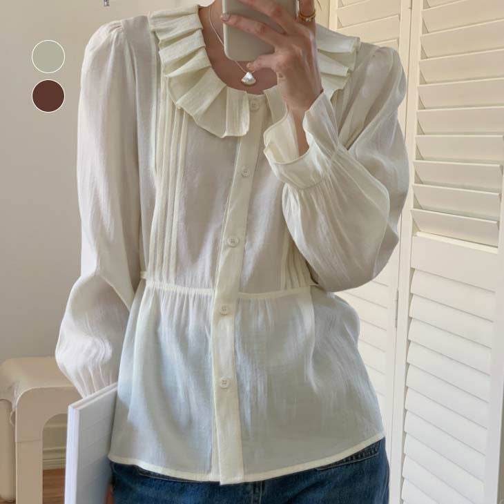 [AMELY by La-gemme]トップス シャツ ブラウス [AMELY by La-gemme]トップス シャツ ブラウス 長袖 フリル デザインカラー 上品 大人可愛い シック 細見え ガーリー シンプル デート 女子会 おしゃれ レディース おすすめ プチプラ 韓国ファッション 【atp302-263】【予約販売:15-20日】【送料無料】メ込2
