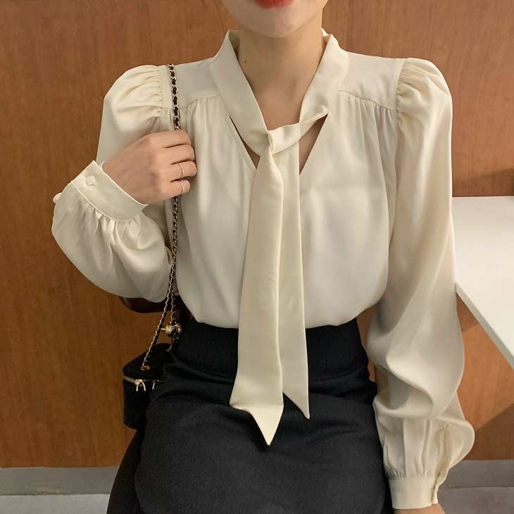 [AMELY by La-gemme]トップス ブラウス タイカラー [AMELY by La-gemme]トップス ブラウス タイカラー パフ袖 2WAYリボン 上品 エレガント 高見え 大人可愛い ガーリー シンプル デート 女子会 おしゃれ レディース おすすめ プチプラ 韓国ファッション 【atp302-265】【予約販売:15-20日】【送料無料】メ込2
