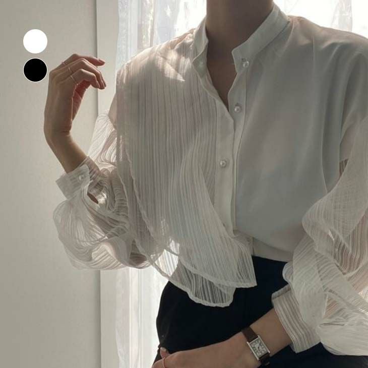 [AMELY by La-gemme]トップス ブラウス スタンドカラー [AMELY by La-gemme]トップス ブラウス スタンドカラー レース調 パールボタン 透け感 上品 大人可愛い エレガント 長袖 ガーリー シンプル デート 女子会 おしゃれ レディース おすすめ プチプラ 韓国ファッション 【atp302-272】【予約販売:15-20日】【送料無料】メ込2