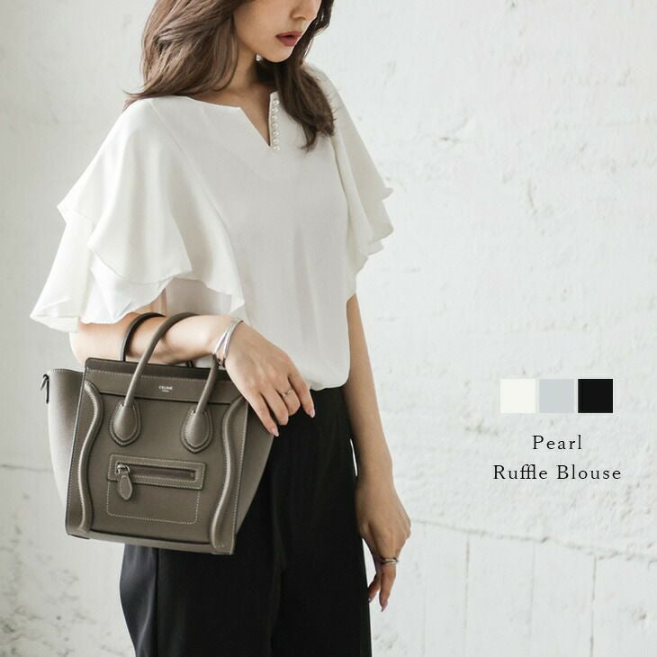 [AMELY by La-gemme]ブラウス フリルブラウス 半袖 [AMELY by La-gemme]ブラウス フリルブラウス 半袖 パール ラッフルデザイン トップス レディース 薄手 おしゃれ 大人 上品 オフィス カジュアル フリーサイズ メール便 2025春夏新作 【atp302-915】【即納:1-5営業日】【送料無料】ユ込2