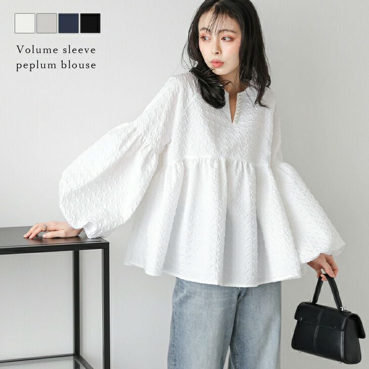 ブラウス ボリュームスリーブ ペプラム キーネック パール 【春夏半額SALE対象】 [AMELY by La-gemme]ブラウス ボリュームスリーブ ペプラム キーネック パール レディース ブラック フリーサイズ 2025春夏新作 【atp303-918】【即納:1-5営業日】【送料無料】メ込2