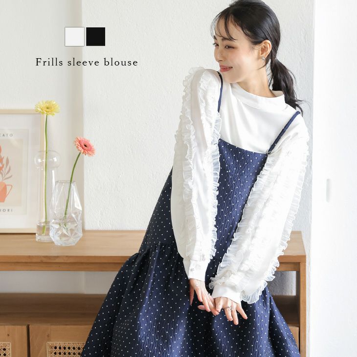フリル袖ブラウス チュール ボリュームスリーブ パール [AMELY by La-gemme]フリル袖ブラウス チュール ボリュームスリーブ 長袖 パール スタンドネック キレイめ 上品 トップス レディース おすすめ おしゃれ フリーサイズ メール便 2025春夏新作【atp304-511】【即納:1-5営業日】【送料無料】メ込1