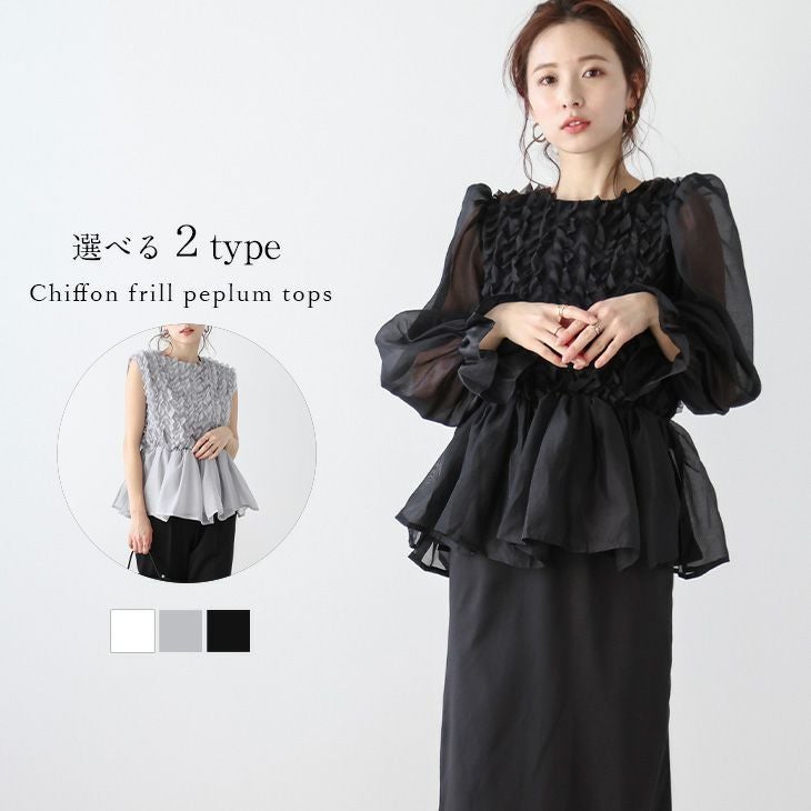ペプラムトップス 2type フリル シアー シフォン 【春夏半額SALE対象】 [AMELY by La-gemme]ペプラムトップス 2type フリル シアー シフォン フレア キャンディースリーブ 華やか フェミニン 上品 大人可愛い レディース おすすめ フリーサイズ メール便 2025春夏新作 【atp304-725】【即納:1-5営業日】【送料無料】ユ込3