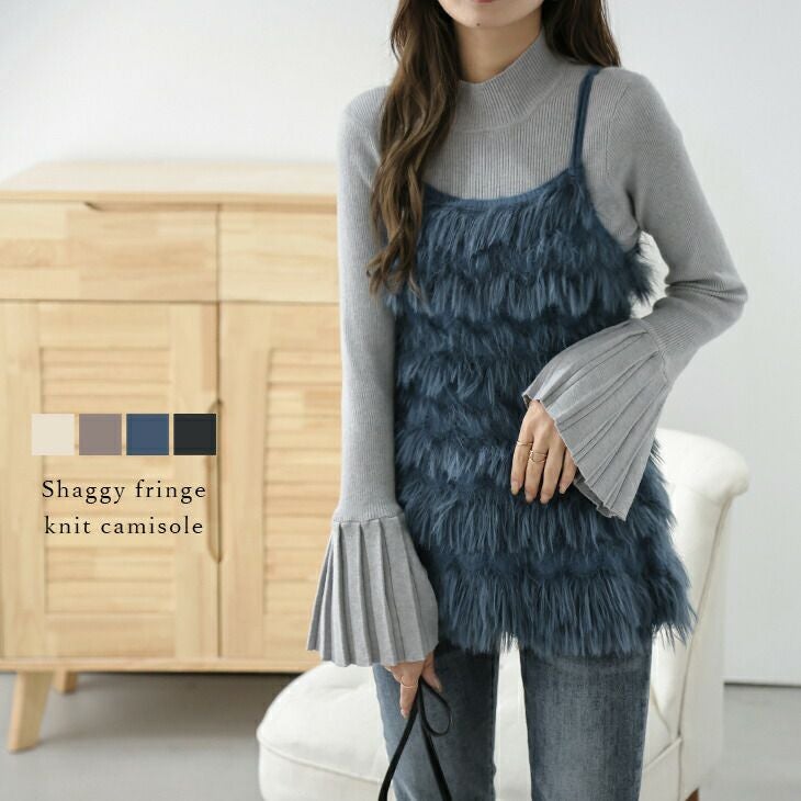 キャミソール シャギーフリンジ ニット レイヤード トップス [AMELY by La-gemme]キャミソール シャギーフリンジ ニット レイヤード トップス レディース ふわふわ おすすめ おしゃれ ブラック フリーサイズ 2025春夏新作 【atp305-366】【即納:1-5営業日】【送料無料】宅込