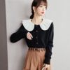 ビックカラー トップス ニット 長袖 ガーリー [AMELY by La-gemme]ビックカラー トップス ニット 長袖 ガーリー 異素材 ドールカラー 可愛い カジュアル デート 女子会 おすすめ レディース トレンド 人気 プチプラ 韓国ファッション 2025春夏新作 【atp308-052】【予約販売:15-20日】【送料無料】メ込2
