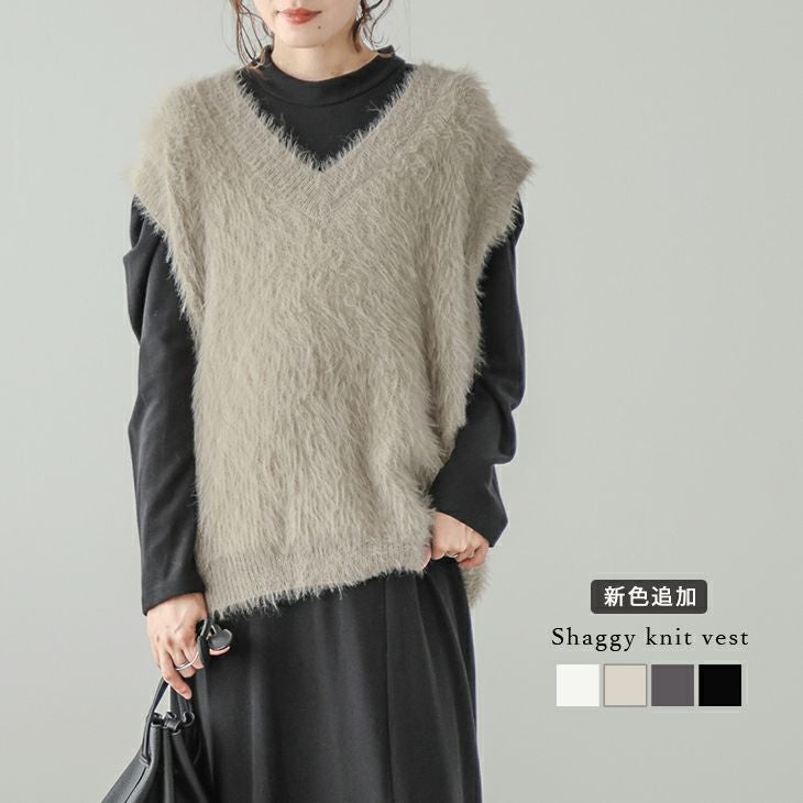 シャギーニットベスト Vネック アウター レディース [AMELY by La-gemme]シャギーニットベスト Vネック アウター レディース おすすめ おしゃれ レイヤード 大人可愛い フリーサイズ メール便 2025春夏新作【atp308-361】【即納:1-5営業日】【送料無料】メ込3