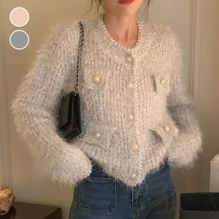 シャギーニットカーディガン パール調ボタン キレイめ 大人 [AMELY by La-gemme]シャギーニットカーディガン パール調ボタン キレイめ 大人可愛い 暖か デート オフィスカジュアル おすすめ おしゃれ レディース トレンド プチプラ 韓国ファッション 2025春夏新作 【atp311-115】【予約販売:15-20日】【送料無料】宅込