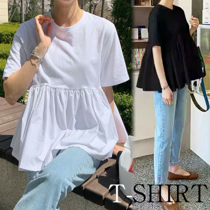 フリルペプラムトップス Tシャツ トップス 半袖 ラウンドネック [AMELY by La-gemme]フリルペプラムトップス Tシャツ トップス 半袖 ラウンドネック フリル 透け感 かわいい シンプル カジュアル 大人 おしゃれ 大人女子 こなれ感 ラフ 抜け感 体型カバー 【atp403-165】【即納:1-5営業日】【送料無料】ユ込3