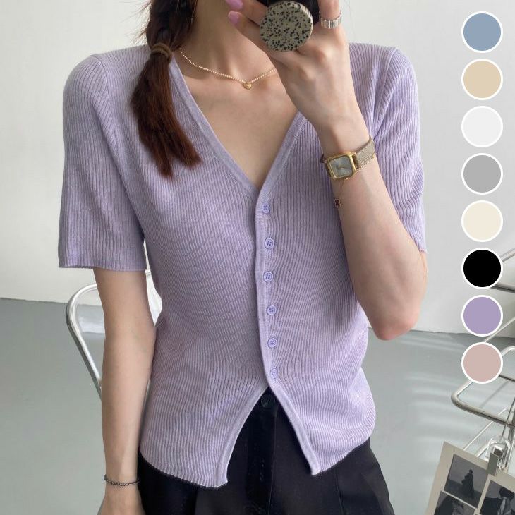 サマーニット カーディガン 半袖 リブニット Vネック [AMELY by La-gemme]サマーニット カーディガン 半袖 リブニット Vネックトレンド 韓国ファッション おすすめ 可愛い おしゃれ レディース メール便 2025春夏新作【atp406-563】【予約販売:15-20日】【送料無料】ユ込2