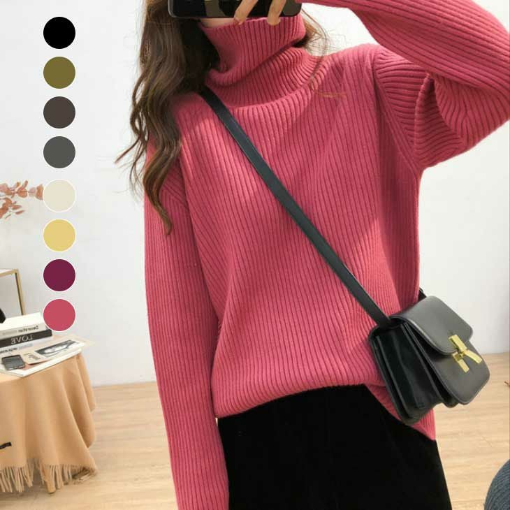 ハイネックタートルニット ニット シンプル 無地 ゆったり [AMELY by La-gemme]ハイネックタートルニット ニット シンプル 無地 ゆったり カジュアル きれいめ 長袖 トップス オフィス 春夏 レディース オシャレ トレンド 人気 プチプラ 韓国ファッション【atp406-676】【即納:1-5営業日】【送料無料】メ込3
