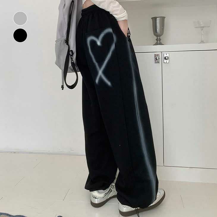 ペイント風 ドロスト スウェット パンツ ボトムス [AMELY by La-gemme]ペイント風 ドロスト スウェット パンツ ボトムス ハート サイドライン 脚長効果 カジュアル ストリート 春夏 レディース オシャレ トレンド 人気 プチプラ 韓国ファッション【atp406-679】【予約販売:15-20日】【送料無料】宅込