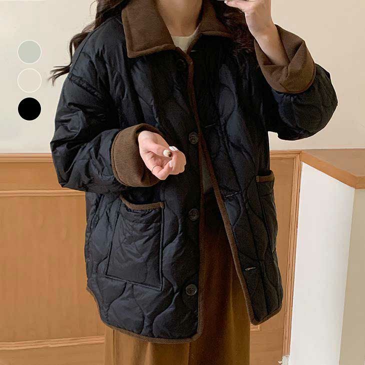キルティング ジャケット 襟付き ボア 異素材 [AMELY by La-gemme]キルティング ジャケット 襟付き ボア 異素材 バイカラー 楽ちん シンプル ママ オーバーサイズ アウター 防寒 春夏レディース オシャレ トレンド 人気 プチプラ 韓国ファッション【atp406-681】【予約販売:15-20日】【送料無料】宅込