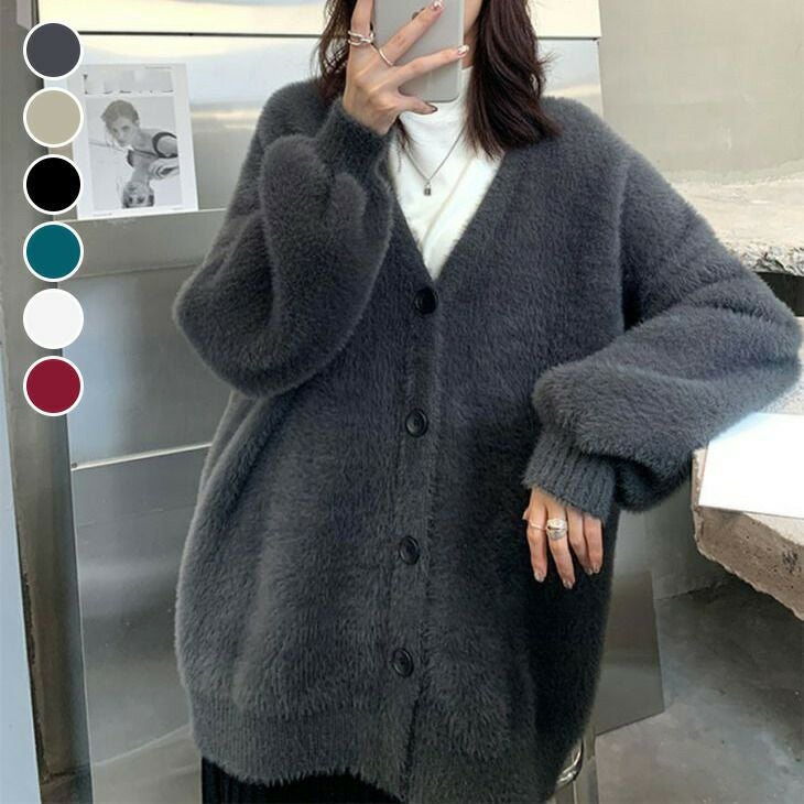 シャギーニット カーディガン Vネック 羽織り ふわふわ [AMELY by La-gemme]シャギーニット カーディガン Vネック 羽織り ふわふわ もこもこ 体型カバー アウター 長袖 春夏 おすすめ レディース オシャレ トレンド 人気 プチプラ 韓国ファッション【atp406-685】【予約販売:15-20日】【送料無料】宅込
