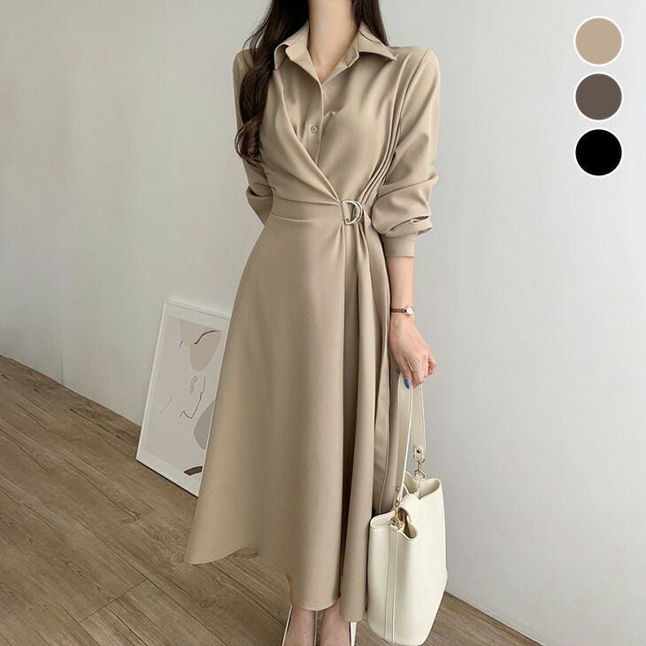 ワンピース カシュクール ミディアム丈 フレア ウエストマーク [AMELY by La-gemme]ワンピース カシュクール ミディアム丈 フレア ウエストマーク 襟付き きれいめ 無地 長袖 春夏 おすすめ レディース オシャレ トレンド 人気 プチプラ 韓国ファッション【atp406-693】【予約販売:15-20日】【送料無料】メ込2