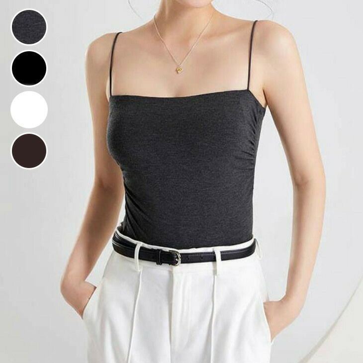 カップ付き キャミソール インナー トップス シンプル [AMELY by La-gemme]カップ付き キャミソール インナー トップス シンプル 無地 キャミ スリム シームレス 夏 おすすめ ボリューム袖 レディース オシャレ トレンド 人気 プチプラ 韓国ファッション 【atp509-wp】【予約販売:15-20日】【送料無料】メ込2