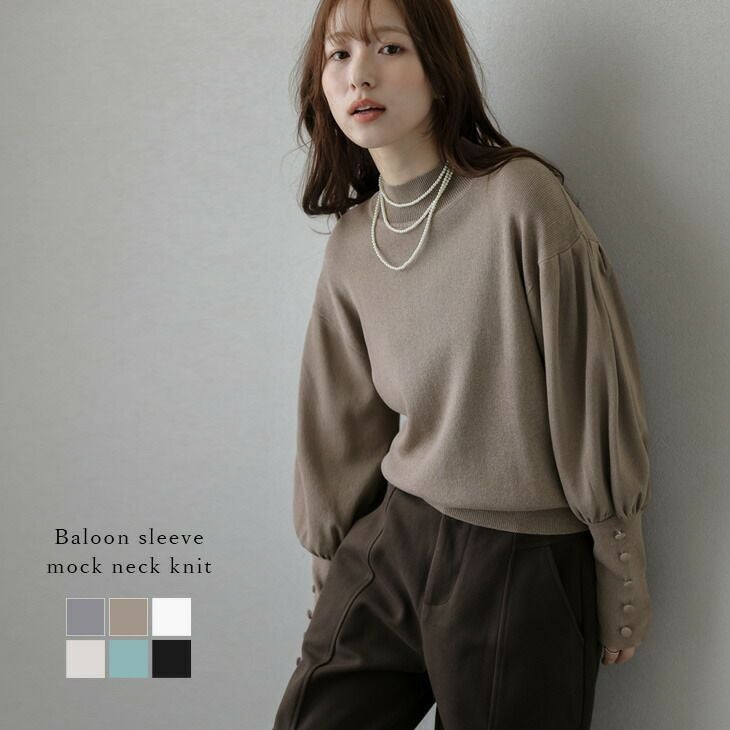 ニット バルーンスリーブ くるみボタン モックネック 長袖 【秋冬半額SALE対象】 [AMELY by La-gemme]ニット バルーンスリーブ くるみボタン モックネック 長袖 ハイゲージニット ドロップショルダー レディース おすすめ おしゃれ フリーサイズ メール便 2025春夏新作【atpaw24-641】【即納:1-5営業日】【送料無料】メ込2