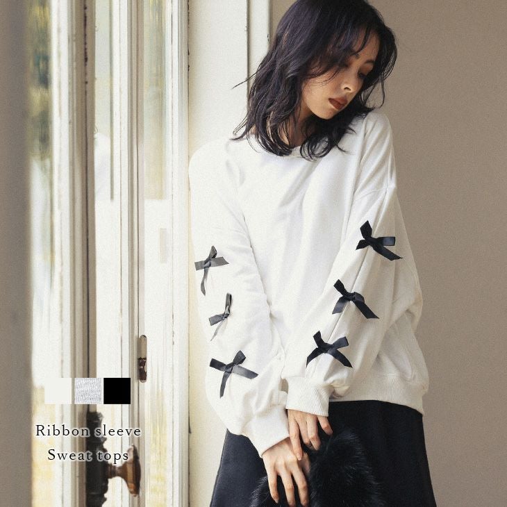 トップス プルオーバー リボン スウェット フェミニン 【春夏半額SALE対象】 [AMELY by La-gemme]トップス プルオーバー リボン スウェット フェミニン 大人かわいい トレンド レディース おすすめ おしゃれ フリーサイズ メール便 2025春夏新作【atpaw24-651】【即納:1-5営業日】【送料無料】メ込4