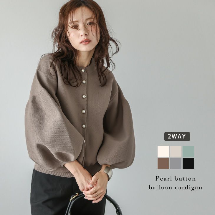 2way パール調 カーディガン トップス ぽわん袖 【秋半額SALE対象】 [AMELY by La-gemme]2way パール調 カーディガン トップス ぽわん袖 バルーンスリーブ フェミニン ニュアンスカラー レディース おすすめ おしゃれ フリーサイズ 2025春夏新作【atpaw24-683】【予約販売:11月13日入荷予定順次発送】【送料無料】60込