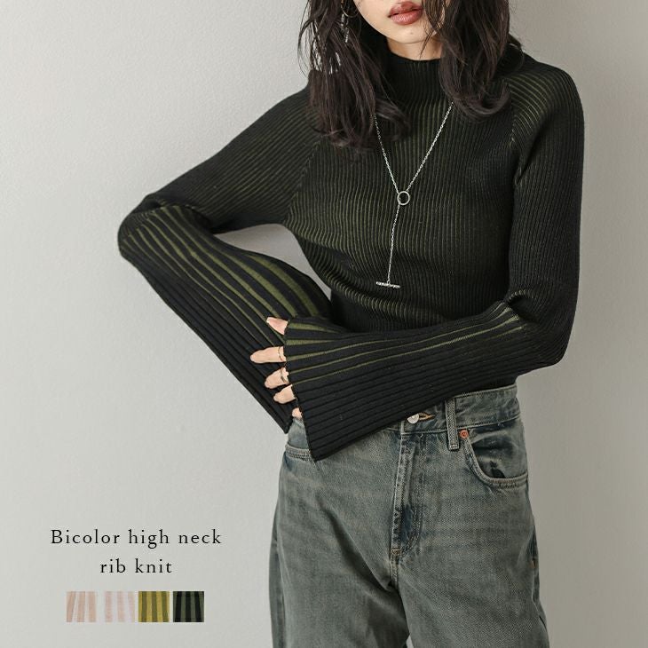 リブニット ハイネック フレアスリーブ バイカラー 配色カラー 【秋冬半額SALE対象】 [AMELY by La-gemme]リブニット ハイネック フレアスリーブ バイカラー 配色カラー トップスレディース おすすめ おしゃれ フリーサイズ メール便 2025春夏新作 【atpaw24-716】【即納:1-5営業日】【送料無料】メ込2