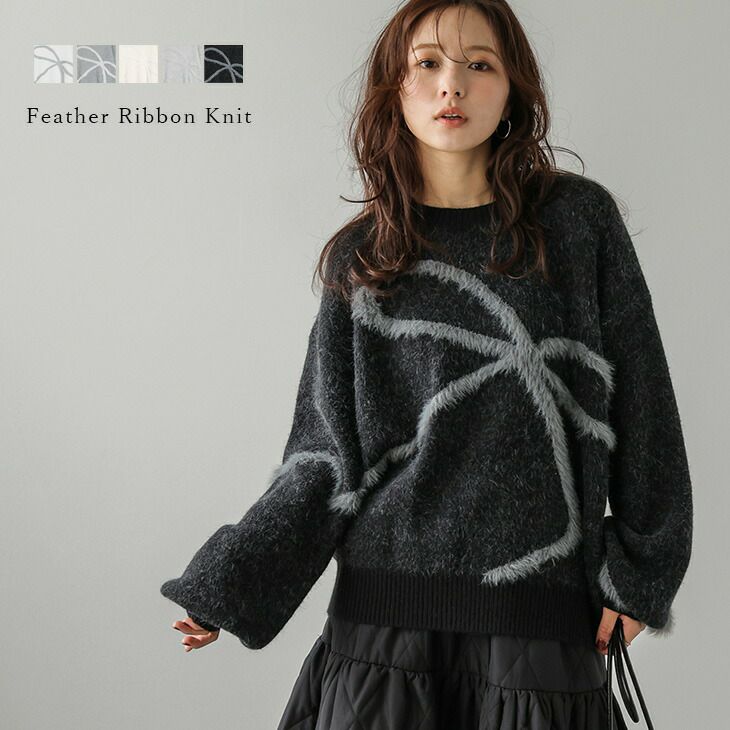 ニット リボン シャギー 大人かわいい ぽわん袖 [AMELY by La-gemme]ニット リボン シャギー 大人かわいい ぽわん袖 着映え フェミニン ルーズシルエット ドロップショルダー トップス レディース おすすめ おしゃれ 2025春夏新作 【atpaw24-878】【即納:1-5営業日】【送料無料】宅込
