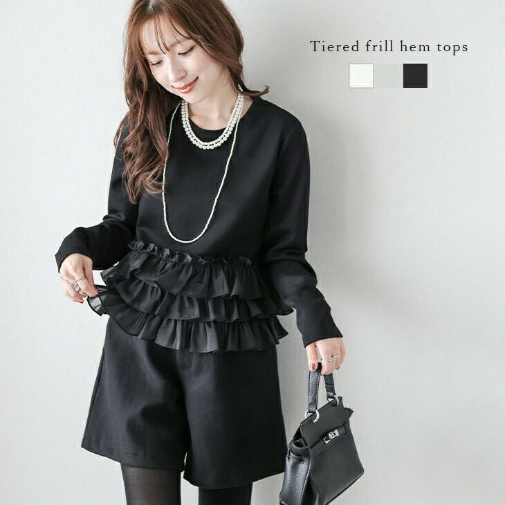 ティアード フリルヘム シアー ペプラム 長袖 【春夏半額SALE対象】 [AMELY by La-gemme]ティアード フリルヘム シアー ペプラム 長袖 ラウンドネック ショート丈 カットソー 大人かわいい 長袖 トップス レディース おすすめ おしゃれ フリーサイズ メール便 2025春夏新作【atpaw25-1451】【即納&予約:3月26日入荷予定順次発送】【送料無料】メ込2