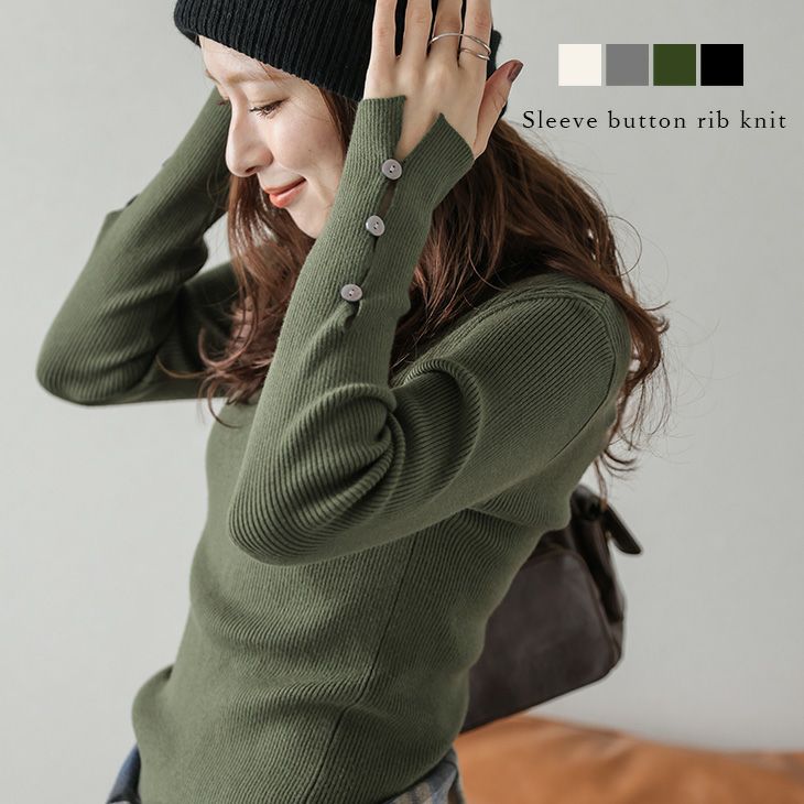長袖 ニット リブ 袖ボタン 着痩せ 【秋冬半額SALE対象】 [AMELY by La-gemme]長袖 ニット リブ 袖ボタン 着痩せ レイヤード シンプル フィット スリットスリーブ デザイン袖 トップス レディース おすすめ おしゃれ フリーサイズ メール便 2025秋冬新作【atpaw25-1474】【即納:1-5営業日】【送料無料】メ込2