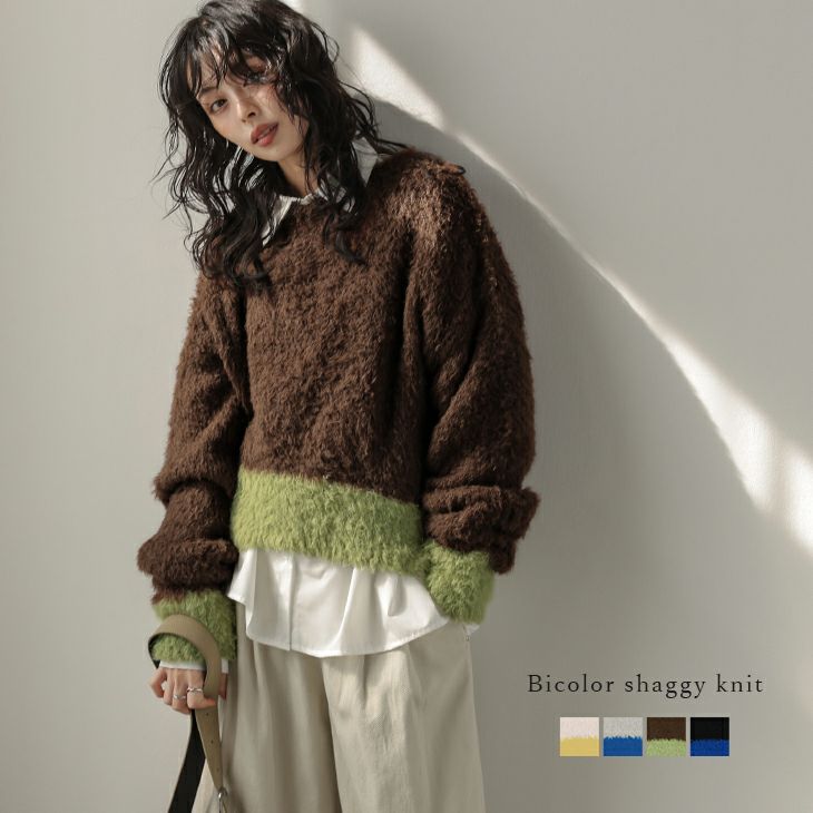 シャギーニット バイカラー 配色カラー ラウンドネック 【秋冬半額SALE対象】 シャギーニット バイカラー 配色カラー ラウンドネック ドロップショルダー 長袖 大人カジュアル レディース おすすめ おしゃれ フリーサイズ 2025秋冬新作【atpaw25-1535】【即納:1-5営業日】【送料無料】宅込
