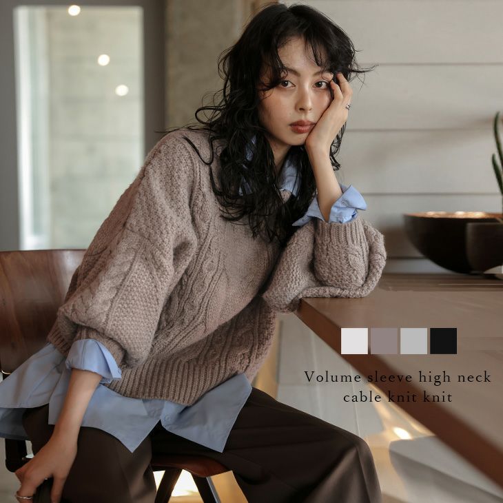 ニット ケーブルニット クロップド丈 タートルネック 【秋冬半額SALE対象】 [AMELY by La-gemme]ニット ケーブルニット クロップド丈 ボリュームスリーブ タートルネック 着映え 定番 トレンド キレイめ レディース おすすめ おしゃれ フリーサイズ 2025秋冬新作【atpaw25-1560】【即納:1-5営業日】【送料無料】宅込