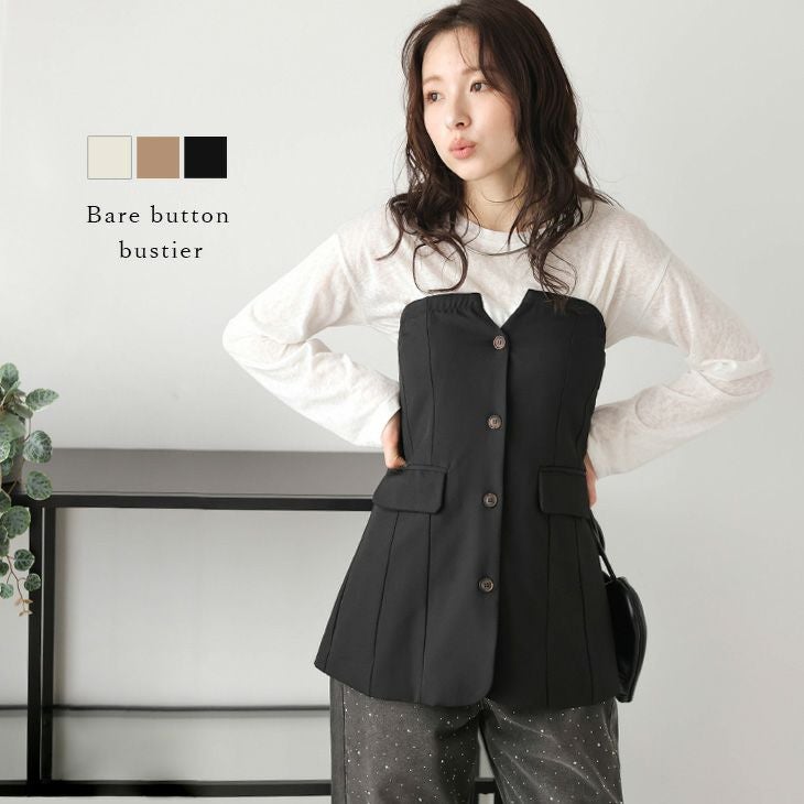 ビスチェ ベアボタン フロントボタン Vライン キレイめ [AMELY by La-gemme]ビスチェ ベアボタン フロントボタン Vライン ジャケットライク バックゴム スタイルアップ キレイめ 上品 レディース メール便 2025春夏新作【atpss24-247】【即納:1-5営業日】【送料無料】メ込2