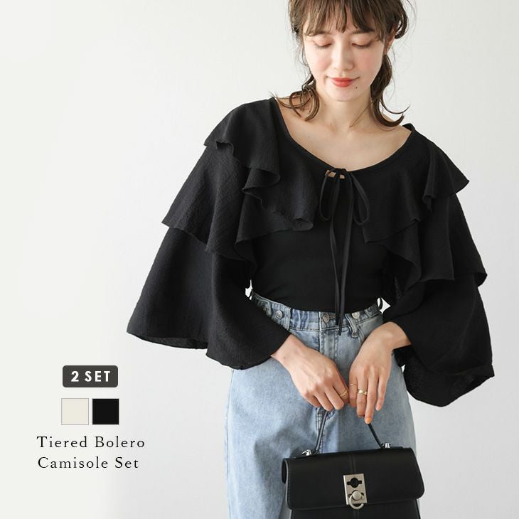 トップス セットアイテム ボレロ ラッフルフリル [AMELY by La-gemme]トップス セットアイテム ボレロ ラッフルフリル キャミソール 2点セット キレイめ フレア レディース おすすめ おしゃれ フリーサイズ メール便 2025春夏新作【atpss24-295】【即納:1-5営業日】【送料無料】ユ込2