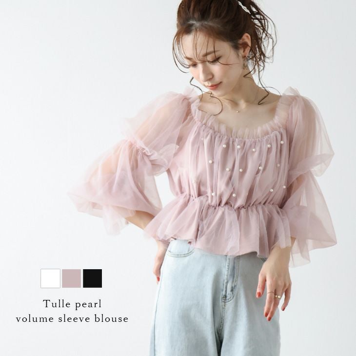チュール シアー チュール パール ペプラム [AMELY by La-gemme]チュール シアー チュール パール ペプラム トップス キャンディースリーブ パフ袖 大人かわいい レディース おすすめ おしゃれ フリーサイズ メール便 2025春夏新作【atpss24-309】【即納:1-5営業日】【送料無料】メ込2